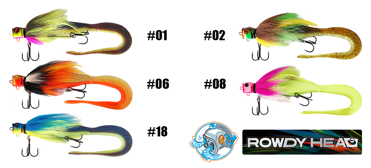 Головная часть Frapp Rowdy Head состоит из массивного "пятака" и объемной опушки с элементами из люрекса. Хвостовая часть крепится на стингере с двумя тройниками и в базовой комплектации состоит из твистера Frapp Tricky Tail 8".
