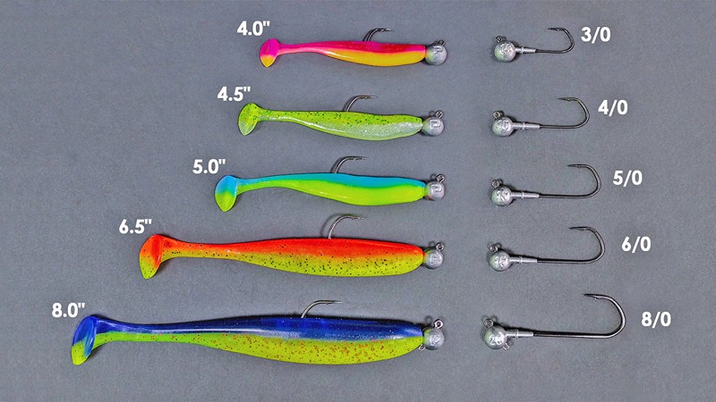 Кольцо крючка на любом весе максимально прижато к шарику свинца. Это даёт нам максимально большой поддев, что с свою очередь обеспечивает надёжную подсечку. Ведь чем больше жало крючка выпирает за габариты джиг-головки, тем надёжнее входит крючок в пасть рыбы.