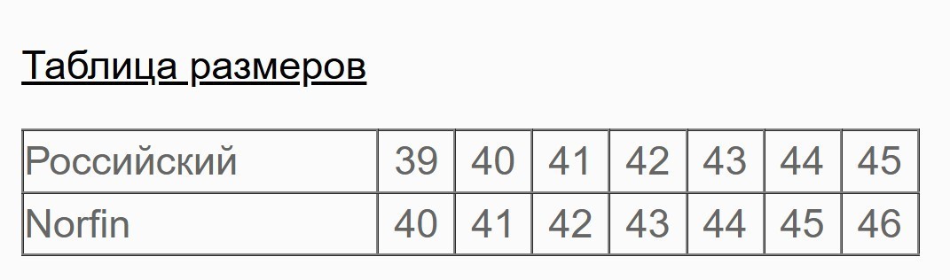 Таблица размеров Norfin Jasper