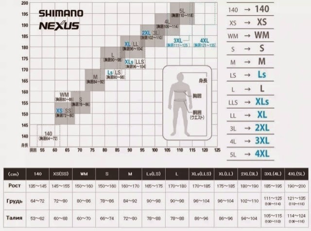 Таблица размеров Shimano Xefo Extreme Fusion GoreTex RB-214Q