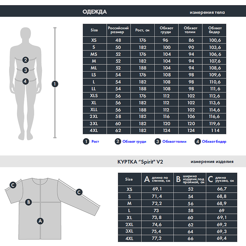 Таблица размеров Анорак FHM Spirit V2