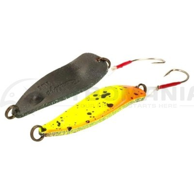 Обращает на себя пристальное внимание использование крючка из толстой проволоки с «лопаткой» вместо ушка, способного выдержать критические нагрузки, а также метод его крепежа к блесне. Дело в том, что наличие подобных крючков исключает возможность их монтажа с помощью заводного кольца. В связи с этим, японские специалисты применили для крепления прочную капроновую нить. Благодаря такому решению, блесна не только выиграла в балансировке при проводке, но «приуспела» в эстетике внешнего вида. К тому же, значительно сокращает вероятность схода рыбы.